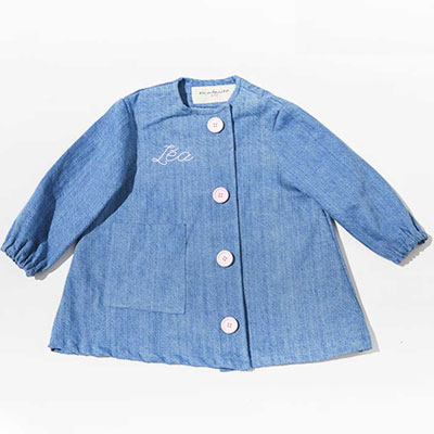 Cette jolie blouse est fabriquée à partir de chutes de jeans, avec un look vraiment sympa elle protégera parfaitement vos enfants dans tous leurs jeux salissants